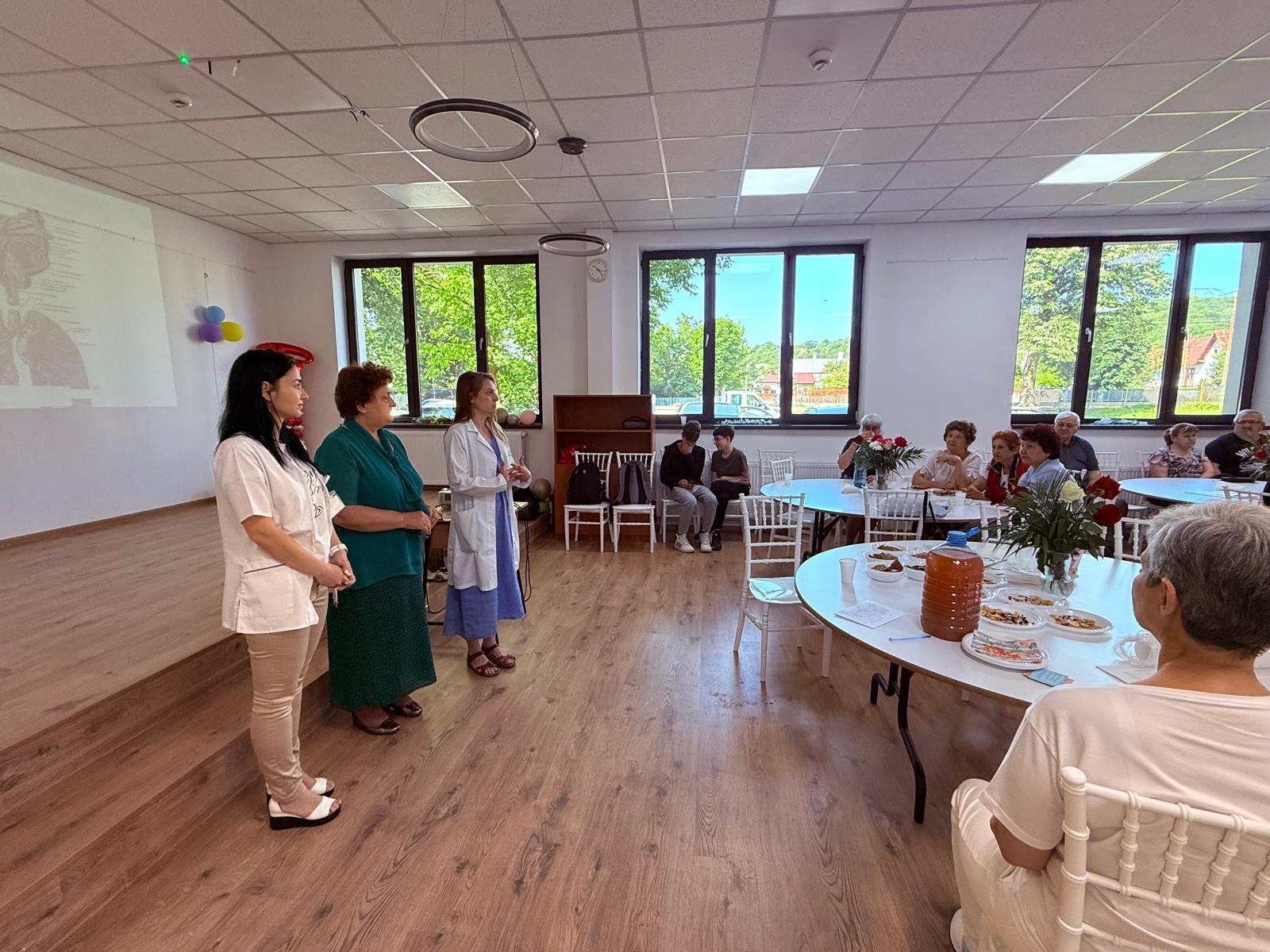 Peste 50 de persoane au beneficiat de consultații medicale gratuite, analize, electrocardiograme și masaj, dar și de o prezentare dedicată bolilor pulmonare, semnelor de alarmă și metodelor de prevenție. Prelegerea a fost susținută de doctor Aurora Campian, medic primar pneumolog la Spitalul Sfântul Ștefan din București.